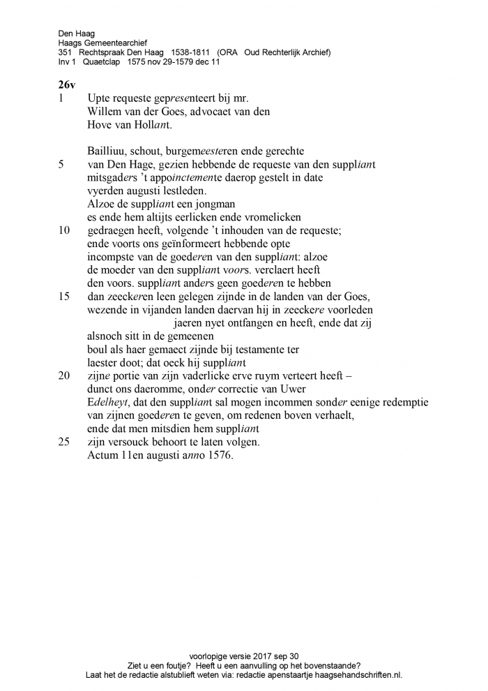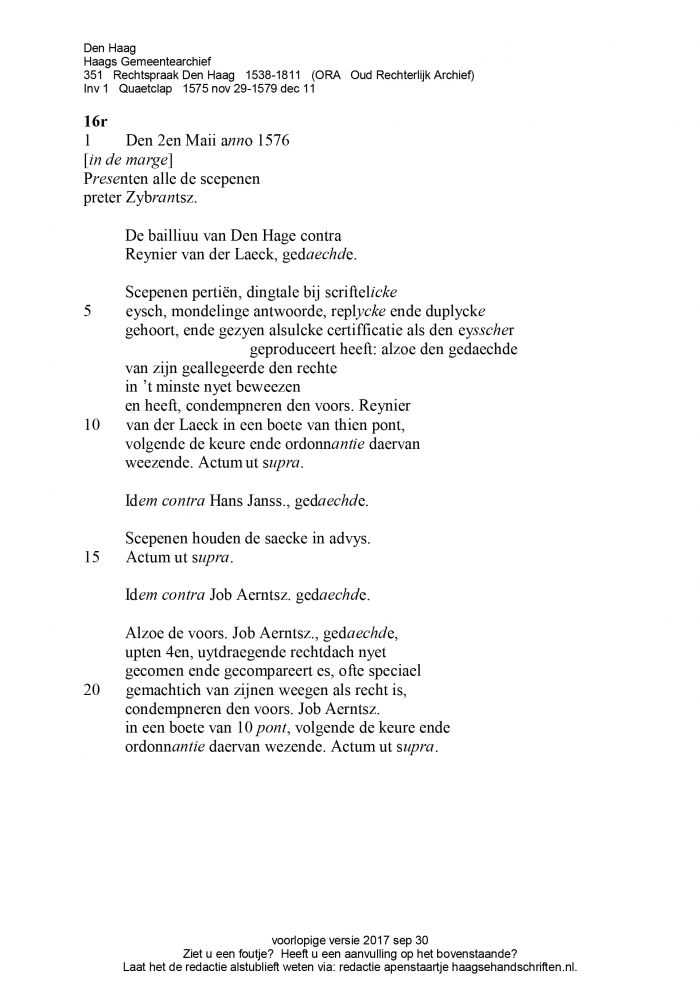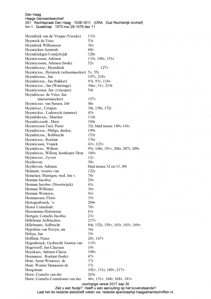 info 351 Rechtspraak Den Haag 1538-1811 (ORA Oud Rechterlijk Archief)